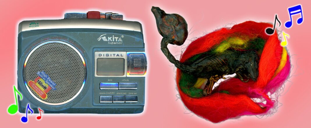 At the heart of the installation stands a colossal collagelike banner that spans two floors. This banner, the NYT review said resembles a cosmic map or something out of a sci-fi video game and is imbued with significance. It embodies an Aymaran form of writing with images known as qillqa. At its center lies a large qillqa head that breaks apart to reveal photographs of Francisco Tancara and the artists’ great-great-grandmother, Rosa Quiñones, according to the NYT review. These images serve as a visual narrative, inviting viewers to engage with the historical journey of their ancestors.