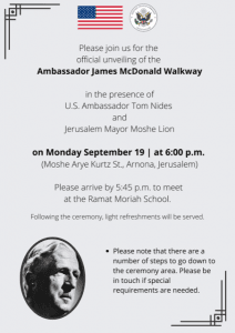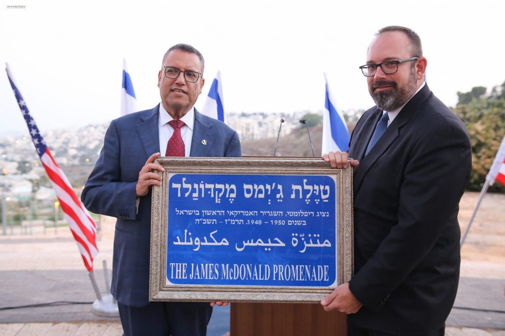 The United States embassy in Jerusalem, by contrast, last week held a ceremony to mark the unveiling of the Ambassador James McDonald Walkway, near the embassy building. Speakers included Jerusalem Mayor Moshe Lion, U.S. embassy official Joseph Wierichs, and Shuli Eshel, director of the critically-acclaimed documentary film about McDonald, “A Voice Among the Silent: The Legacy of James G. McDonald.”