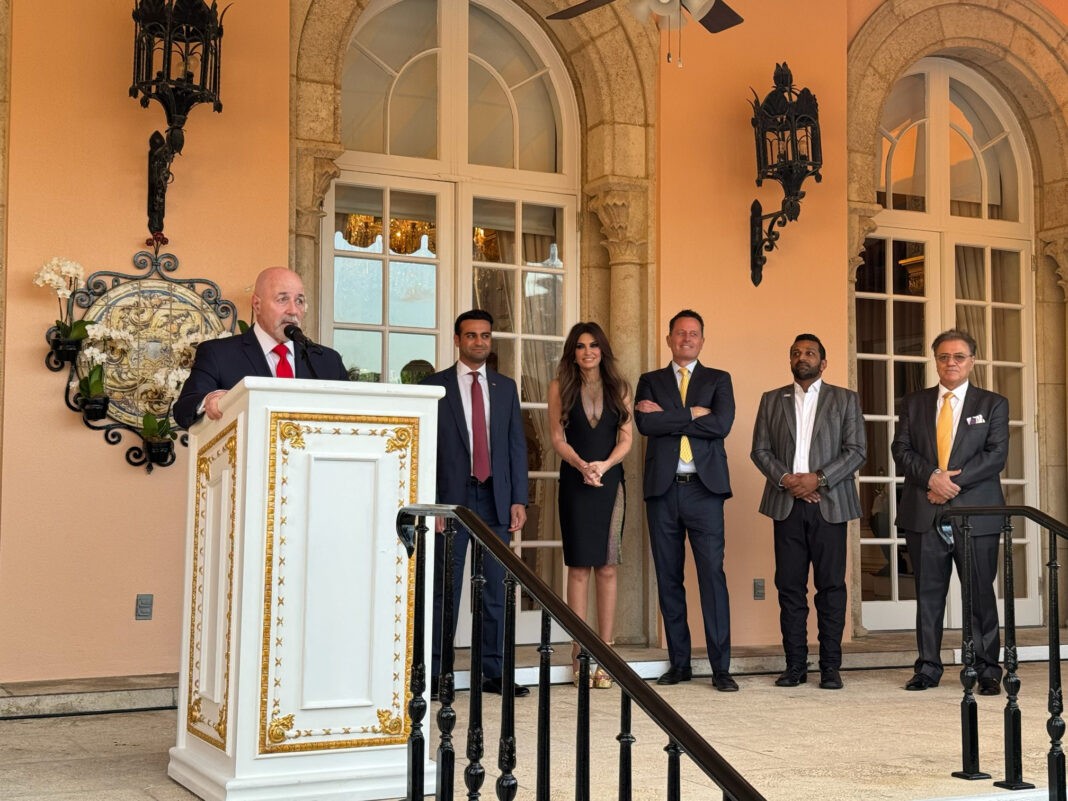 On Tuesday March 19th 2024 over a hundred Trump supporters gathered at the Mar-a-Lago Club in Palm Beach at 5:30 PM to support 33-year-old Trump endorsed Abe Hamadeh as Republican candidate for Arizona’s 8th Congressional District. With event chair Kimberly Guilfoyle joining Israel lovers Siggy Flicker, Adam Kidan and David Fishman as chairs the evening was glamorous, thought provoking, fun, and critical to remediate the current political morass the Country finds itself in. Guilfoyle a former television news star, San Francisco prosecutor and the most eloquent woman on the political stage today made a grand entrance while attendees patiently waited to snap a much coveted picture with the glamorous presidential advisor.