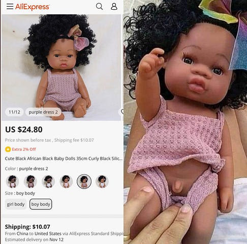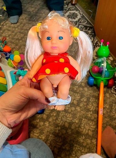 Our Weekly Clown World newsletter brought to your attention some of the groomer toys available to children — Fisher Price’s “RuPaul Drag Race” trans doll set for toddlers, Walmart’s body pillow shaped like a penis advertised for adults and children while the picture of the item showed a very young girl snuggling with the massive penis. And you might have thought, toys like that are rare and they slipped through the production cracks, but you would be wrong.