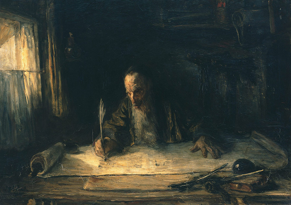 That sofer, with his “black cap” and “large, yellowish-white beard” that flowed over the parchment, inspired one of Israels’s great paintings, “Jewish Scribe” (1902), in the collection of the Kröller-Müller Museum in Otterlo in the Netherlands.