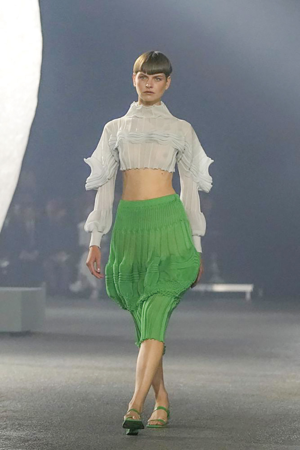 A loose white shirt had additional layers of fabric on the shoulder that fluttered like wings, while a neon-yellow trench with voluminous arms dazzled like the first ray of sun.