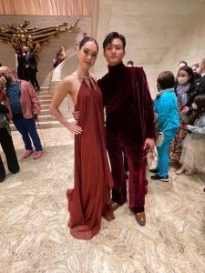 Following a cataclysmic pandemic the daring fashion choices of attendees was astounding; this was the New York A-list that could easily compete with the Academy Awards red carpet: ladies and gentlemen in bows, sequins, jewels, flowers and plaid. The actual performance scheduled to start at 7 PM was delayed until 7:30 with lines snaked around the Lincoln Center Plaza. Attendees were greeted with a speech by chair of Board of Directors Diana Taylor, sans boyfriend Michael Bloomberg despite his daughter Georgina chairing, announcing that a record-breaking $3.4 million had been raised. A lengthy video was presented where designers of the evening Alejandro Gomez Palomo, Raf Simons, and Giles Deacon were introduced along with a history of the gala’s past collaboration between 30 designers and 18 choreographers. While relishing the outstanding fashion of the audience and dancers as a former ballet dancer I was equally disappointed by the mediocrity of the performances.