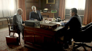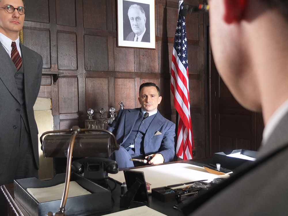 Actor Michael Fox as Alfred Wetzler being interviewed. Photo Credit: Oxford Films Early November 1944: John Pehle received the complete The Auschwitz Protocol and shared the report with John McCloy who informed him that bombing Auschwitz was not “feasible from a military standpoint.” Failing to get the War Department involved, Pehle leaked The Auschwitz Protocol to newspapers.