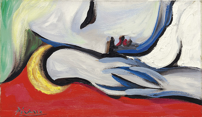 The 16 x 16 inch (40 x 40 centimeter) painting is signed and dated in the year 1919. It is believed to be a study for the stage curtain Picasso painted for a ballet of the same name that debuted that year in London, according to the New-York Historical Society. That curtain has been on display at the historical society in New York City since 2015.