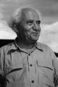 Ben-Gurion espoused statehood and suppressed efforts from both the right and left, which he perceived as grave risks to the existence of a strong, unified military. His vision of the state led him to dismantle the underground units on the eve of the War of Independence and replace them with the Israel Defense Forces. He served as both Prime Minister and Minister of Defense in the first national government and as leader of the Labor Party in succeeding governments. He was likewise among the founders of the Histadrut (General Organization of Workers in Israel) and the first leader of the Yishuv (Jewish community in mandatory Palestine). Ben-Gurion established and led the Mapai workers’ party, after which he resigned to found the Rafi party which eventually merged with Mapai to form Israel’s Labor Party.