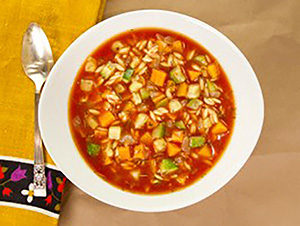 Sukkot kicks of the soup season in our family. I love to start each evening Yom tov meal with a warm and soothing soup, like any of the soups below. For daytime meals, I also serve soup but if it’s warm outside, I always include a cold soup like Chilled Mango Curry Soup or White Grape Gazpacho Soup. Garnish the soups with creative fall ingredients like toasted pumpkin seeds, thick rustic croutons, or a lemon slice. I also like to use a pretty paper napkin in between the soup bowl and the small plate that coordinates with my tablecloth to present the soup with a jolt of color and fun. Use big bold patterns like polka dots, wild flowers, and great stripes. Chag Sameach!