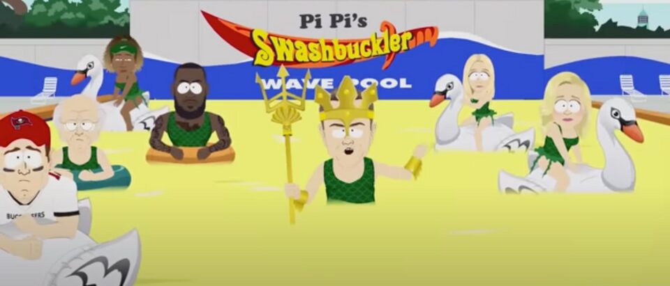 “Hi, I’m Matt Damon. Me and all my Hollywood friends have a little secret to share,” a cartoon Damon says while in a wave pool filled with urine and surrounded by other cartoon A-Listers, such as Brady and David.