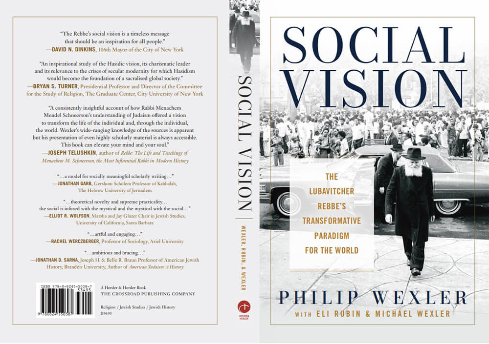 If the above works describe the Rebbe as empowering personal counselor, Philip Wexler’s Social Vision: The Lubavitcher Rebbe’s Transformative Paradigm for the World (with co-contributors Eli Rubin and Michael Wexler; Herder & Herder, $34.95) makes a much bolder argument about the impact and vitality of the Rebbe’s teachings, not only on individuals and for Jews, but as an advanced system to achieve societal repair.
