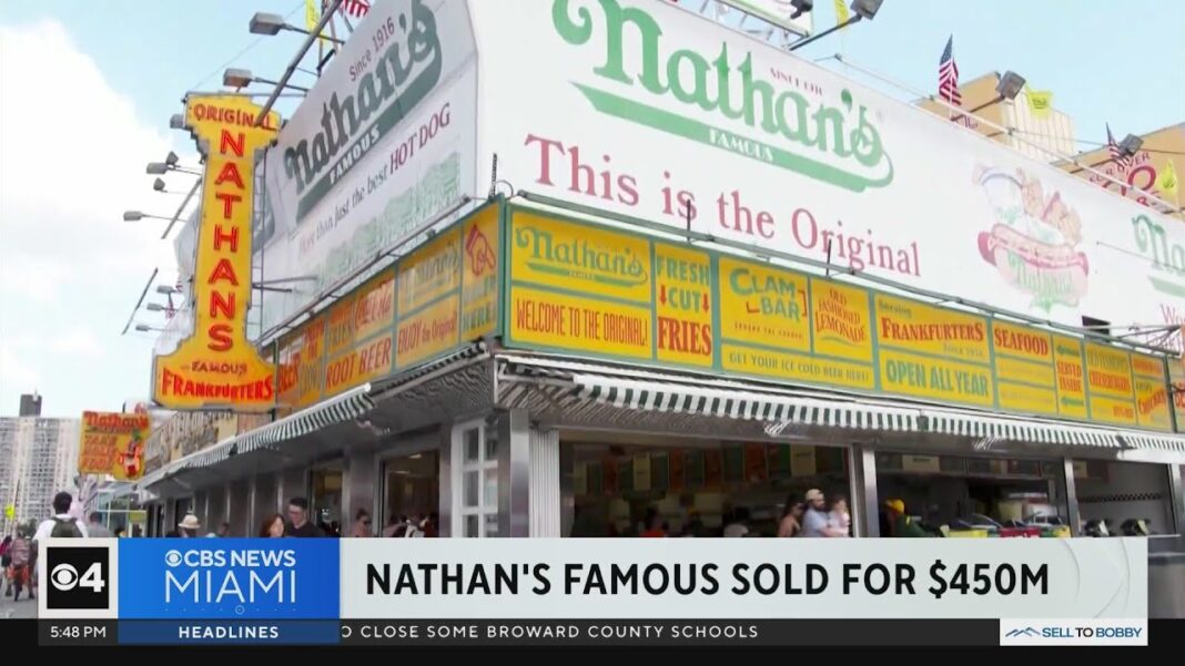 (AP/TJV) Nathan’s Famous, which opened as a 5-cent hot dog stand in Coney Island more than a century ago, has been sold to packaged meat giant Smithfield Foods in an all-cash $450 million deal, the companies announced Wednesday.