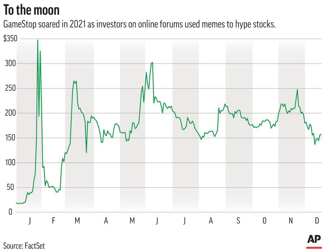 Small investors piled into stocks in 2021, at times banding together on online forums like Reddit’s WallStreetBets to stoke a frenzy over certain companies like GameStop. The financially struggling video-game retailer surged more than 1,600% in January as novice investors using trading apps like Robinhood snapped up shares. The mania led to big losses for some hedge funds, multiple halts in trading and congressional hearings asking who was getting hurt.
