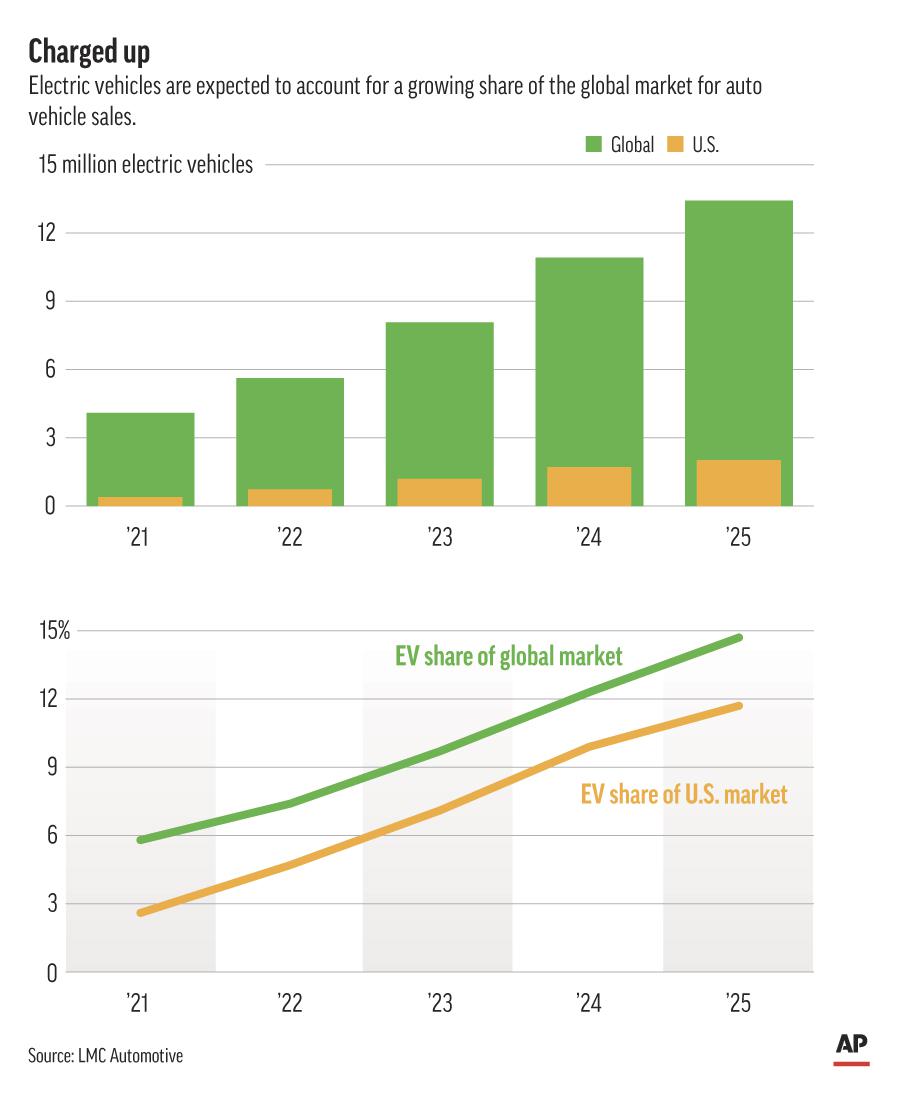 The industry’s old guard revved up its commitment to EVs — for example, General Motors plans a GMC Hummer EV. But GM had to stop selling two EVs due to a recall for battery fires, and rival Ford is expected to top it in EV sales. GM shares still rose more than 30%; Ford shares more than doubled. Although EVs will only be 5.8% of global new-vehicle sales this year, that figure could grow close to 15% in 2025, says research firm LMC Automotive.