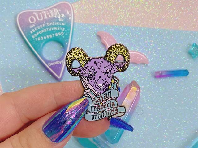 “He means to you what you need him to mean. So for me, Satan is hope, compassion, equality, and love. So, naturally, Satan respects pronouns. He loves all LGBT+ people. I went with a variation of Baphomet for this design, a deity who themself is a mixture of genders, beings, ideas, and existences. They reject binary stereotypes and expectations. Perfect,” the designer added.