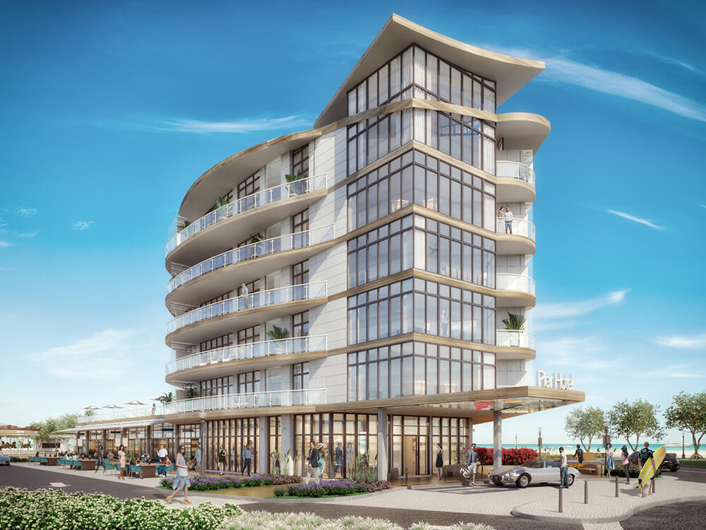 Construction of the boutique hotel at Pier Village began in January 2018. The project also features 245 high-end condos called The Lofts, which carry a price tag ranging from $569,000 to $2.4 million.