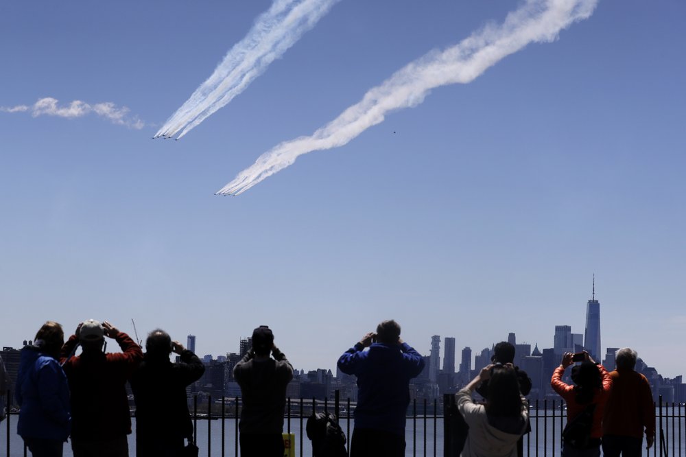 Jets from Navy’s Blue Angels and the Air Force’s Thunderbirds flew over New York City in a tribute to the medical personnel, first responders and other essential workers involved in fighting the pandemic.