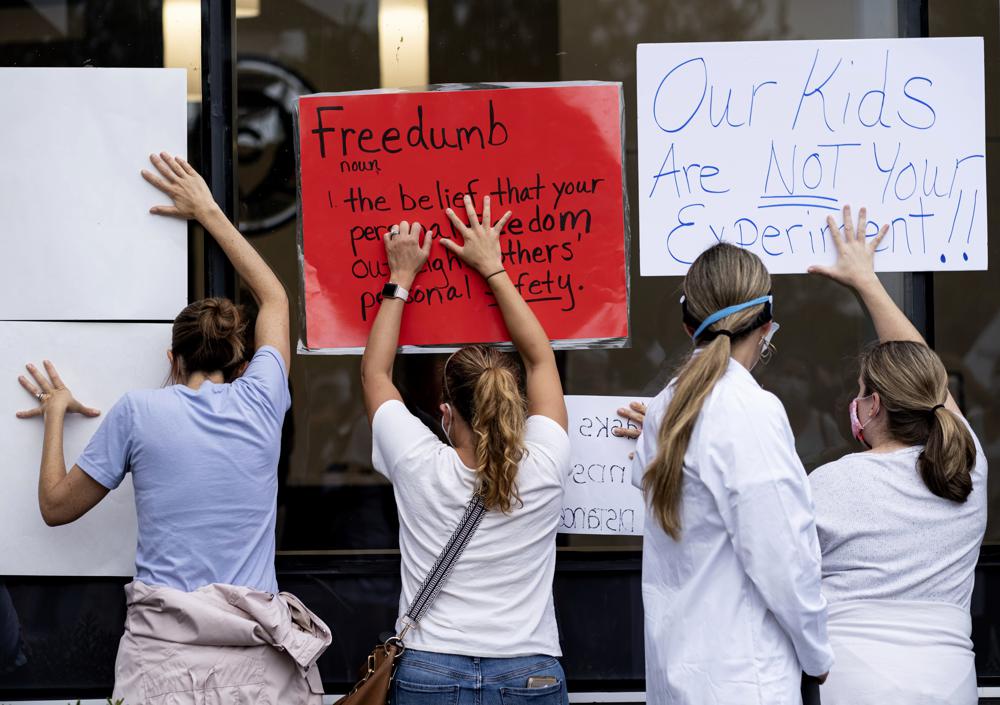 In Kansas, commissioners in Douglas County in the Lawrence area were confronted with an angry, mostly unmasked crowd Wednesday before they mandated indoor public masks for 2- to- 12-year-olds who are too young to be vaccinated. During four hours of public comment, opponents invoked the Holocaust, the Taliban and Japanese internment camps.