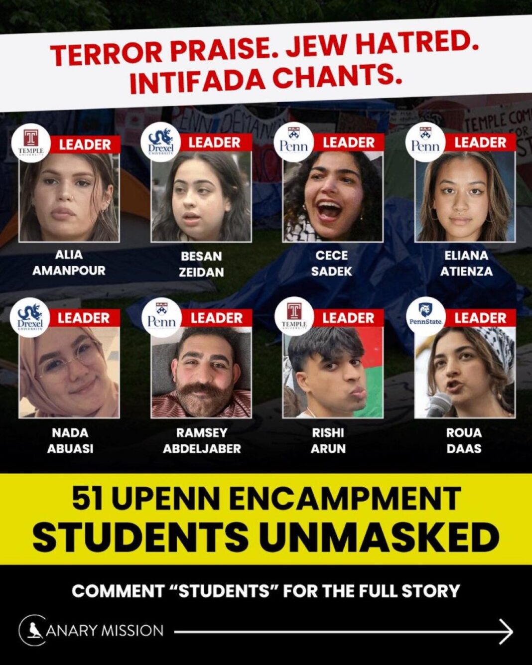 In an exclusive exposé released by watchdog group Canary Mission, the identities of key organizers behind the controversial “Gaza Solidarity Encampment” at the University of Pennsylvania have been revealed, igniting fierce debate over free expression, antisemitism, and campus safety.