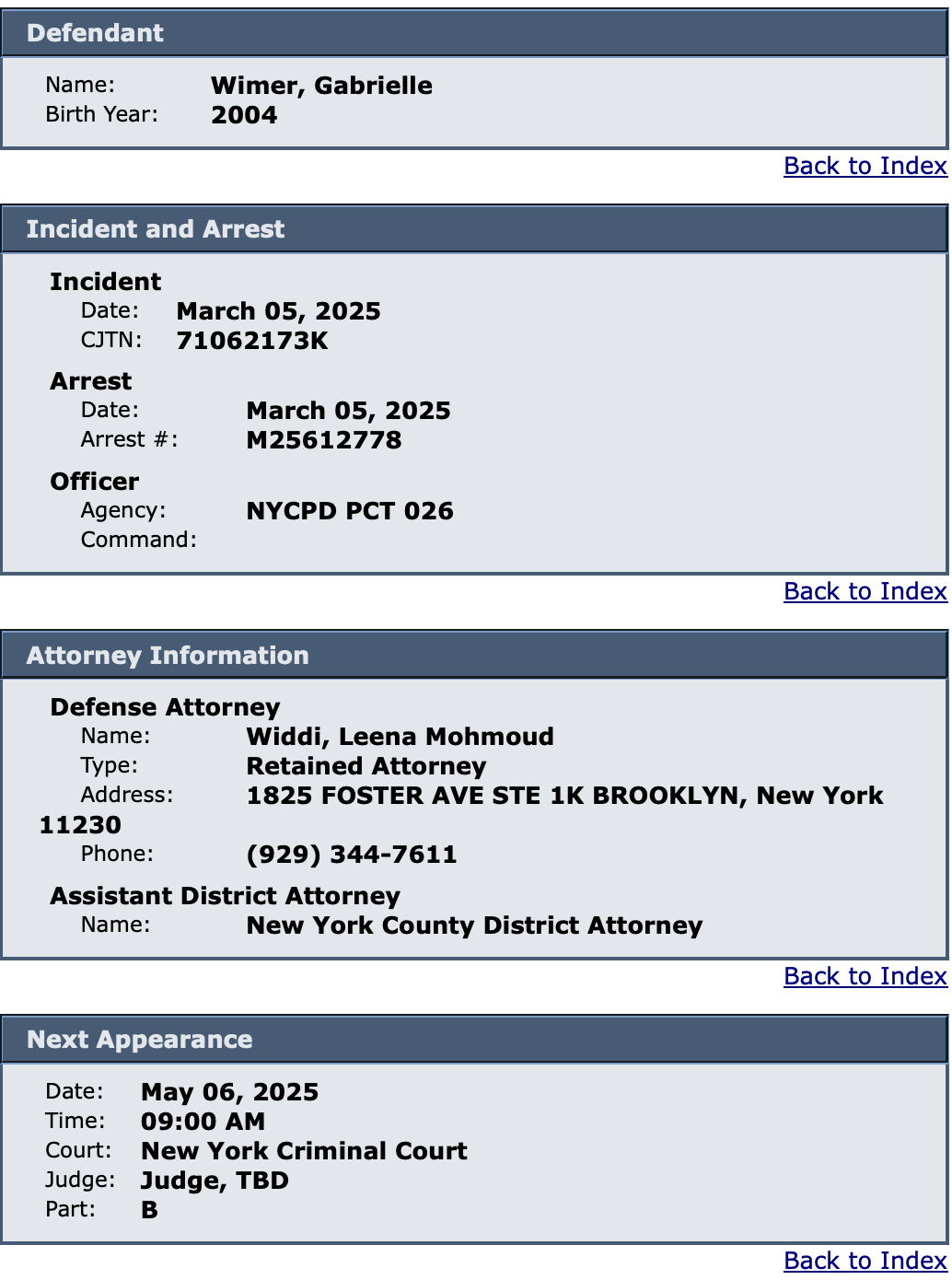 Remember Gabrielle Wimer, a Columbia medical student who was arrested after storming a building at Barnard during a pro terror mob takeover?