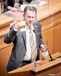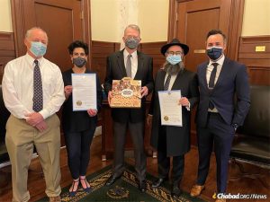On house and senate floors in state capitols, elected officials paid tribute to the Rebbe’s teachings and vision and rededicated themselves and their constituencies to the ideals of morality, ethics and charity. In the Arkansas House of Representatives, charity boxes and accompanying cards had been placed on each representative’s desk.