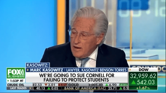 Trial lawyer Marc Kasowitz on Monday told the ‘The Claman Countdown’ on Fox Business News that his New York based law firm, Kasowitz Benson Torres LLP, will be representing Jewish students and faculty at universities who have faced anti-Semitic harassment and discrimination in the aftermath of the October 7th Hamas terrorist attacks in southern Israel which left 1400 dead and 5000 injured.