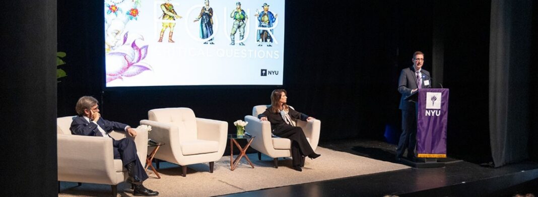 Calling for critical inquiry founded in precision, empathy, and courage, NYU President Linda G. Mills opened the day-long event by emphasizing NYU’s decision to harness its unique academic strength.