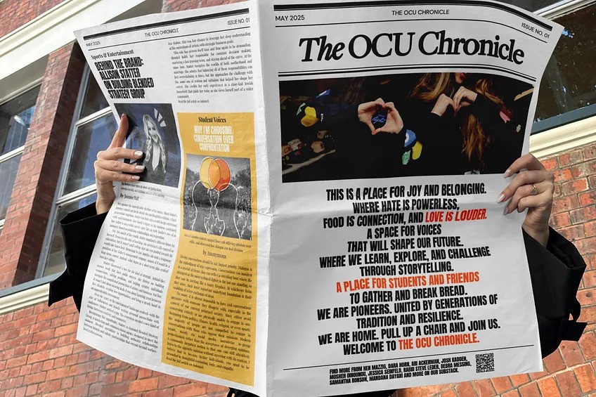 The OCU Chronicle, a new student newspaper created for students by students, officially launches today, May 13, 2025, providing a bold, unapologetic platform for Jewish voices and allies around the world. The OCU Chronicle will be available via Substack and will publish quarterly.