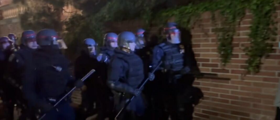 UCLA BREAKING 🚨 : CHP RIOT POLICE HAVE BROKEN THROUGH, POLICE HAVE BREACHED THE ENCAMPMENT. PEOPLE BEING DETAINED. pic.twitter.com/uxcAOReRp5