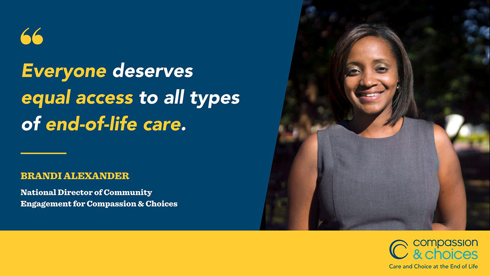 Compassion & Choices’s press release included a statement from the chief diversity, equity, and inclusion officer at the Alzheimer’s Association, Carl V. Hill. “We are excited to collaborate with Compassion & Choices to expand our reach, connecting families affected by Alzheimer’s and other dementia to disease information, education programs, and access to care and support services,” Hill said.