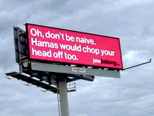 JewBelong reportedly has similar billboards around the country, with one in California recently being vandalized, the JWeekly reported.