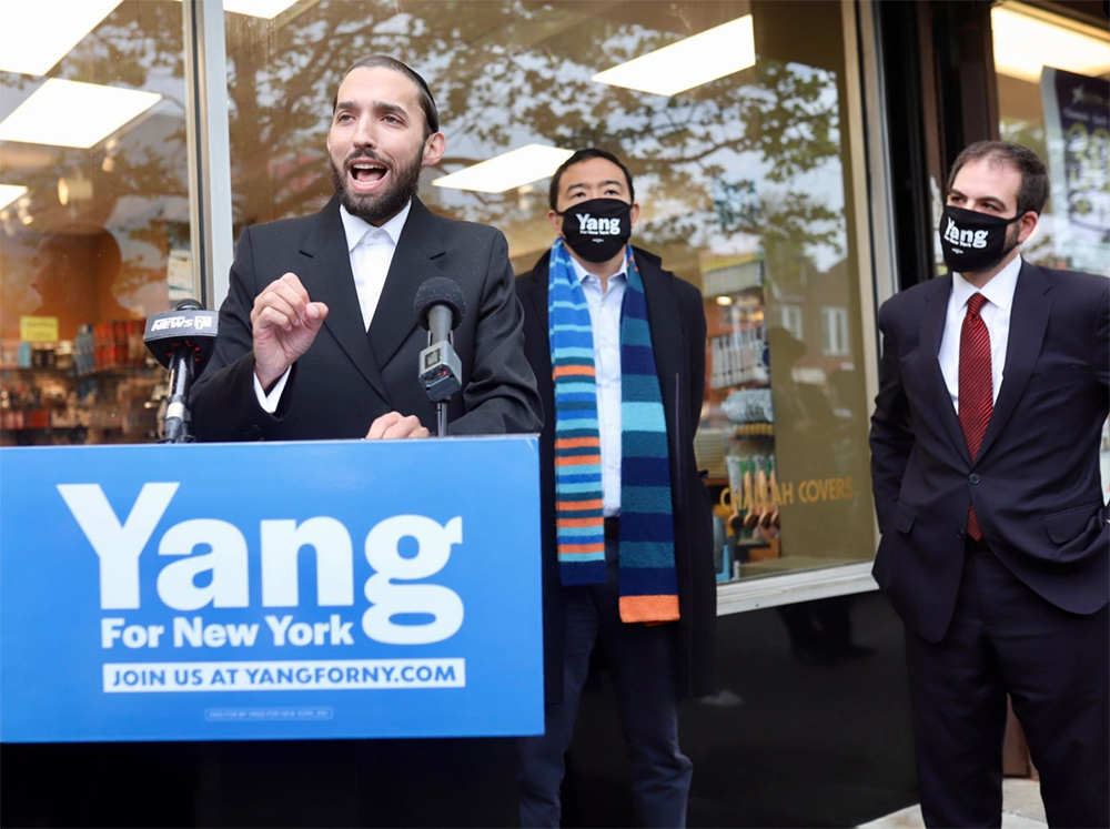 Nevertheless, Yang has the endorsement of several Orthodox politicians, including Daniel Rosenthal, a state assemblyman from Queens, and City Councilman Kalman Yeger and State Assemblyman Simcha Eichenstein, both of Brooklyn.
