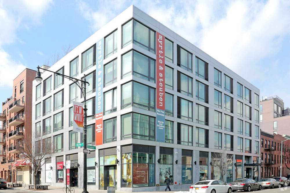 “The sister buildings of Myrtle and Steuben offer newly constructed residences that seamlessly blend the sophisticated touches with a modern sensibility you will adore,” reads the description on Greystar’s website. “The combination of streaming natural light, soaring ceilings, stylish finishes, and impressive-yet-practical amenities has created a thoughtful contemporary expression of style and tranquility.” Apartments are equipped with Quartz countertops, stainless steel appliances, and private balconies. Building amenities include a lobby, modern fitness center, rooftop terrace with outdoor grilling, a Zen garden and a Commercial Epicenter.