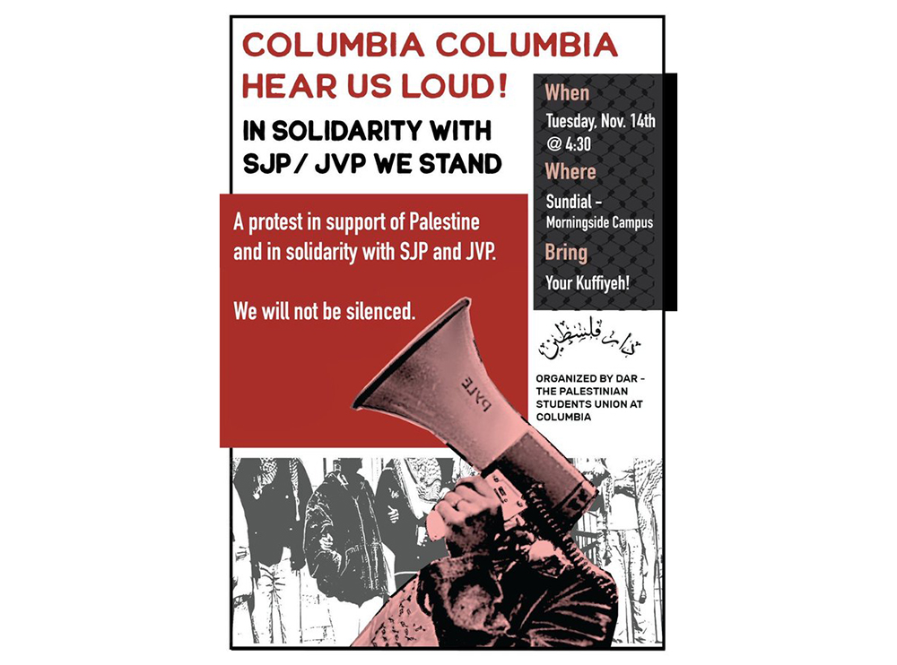 Columbia University in New York City has suspended Students for Justice in Palestine (SJP) and Jewish Voice for Peace (JVP) as official student groups on campus through the end of the fall semester, as was reported by the Algemeiner.com web site on Friday. The university’s senior executive vice president, Gerald Rosberg, announced the suspension, citing repeated violations of campus event policies, culminating in an unauthorized event with threatening rhetoric and intimidation.