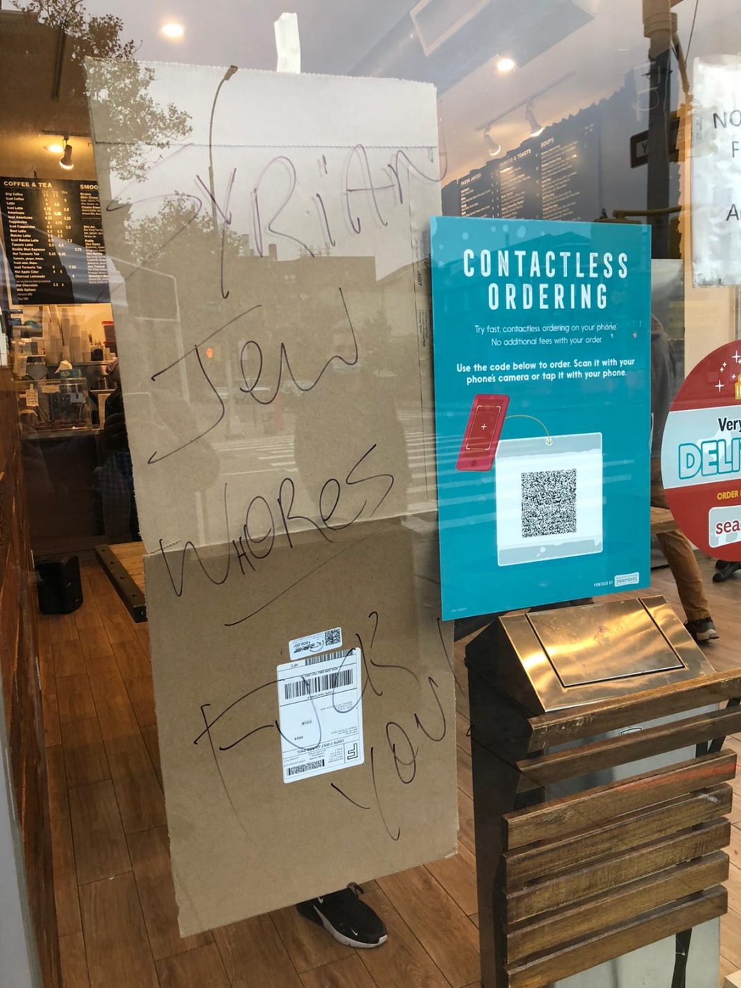 “The hate that we saw scrawled on the window of this cafe is only the latest example of the inexcusable anti-Semitic hate that we have seen and continue to see in this city,” said Brooklyn Assemblyman Simcha Eichenstein, who represents Borough Park. “This vile hatred can never have a place in our neighborhood nor anywhere in this world.”
