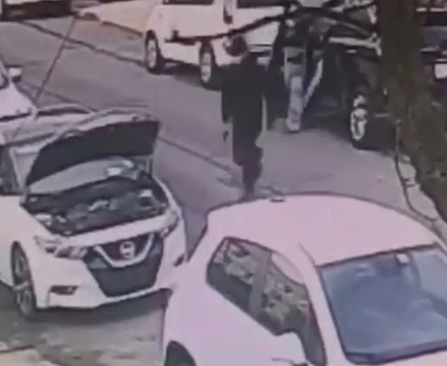 Shocking surveillance footage captured the moment Jermaine Dixon, 46, was ambushed and shot dead by the unidentified killer who was wearing a traditional rekel – a long, black coat – and a wide brim black hat, in the video obtained MailOnline.com.