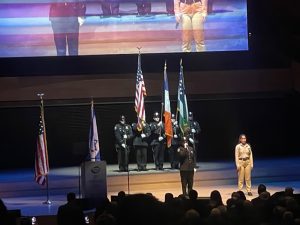 The program which took place in the seated hall began with gala emcee Noa Tishby, Israel’s First Special Envoy for Combating Anti-Semitism, speaking of the rise in anti-Semitism and the scarily and previously unimaginable current scenario of cultural leaders espousing anti-Semitic tropes. President of the IAJF, Steven Khadavi, welcomed Mike Pence and remarked that the 48th Vice President might pick past speakers Mike Pompeo and Nikki Haley for a 2024 Presidential ticket.