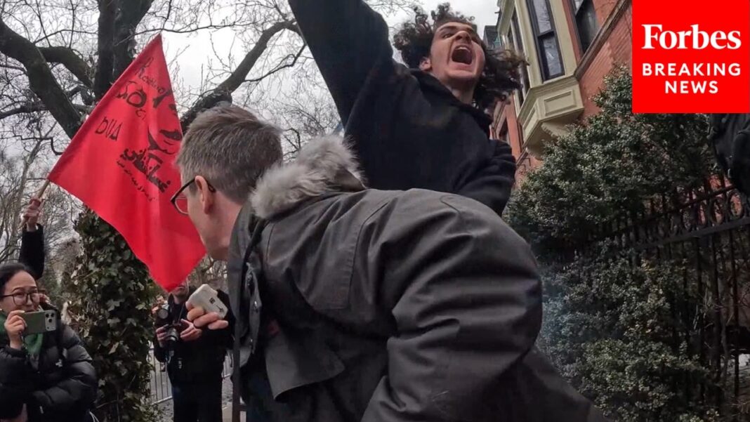 The protest quickly attracted a much larger crowd of counterdemonstrators who assembled to challenge Lang’s message, creating a tense and volatile atmosphere in the area surrounding the mayor’s residence.