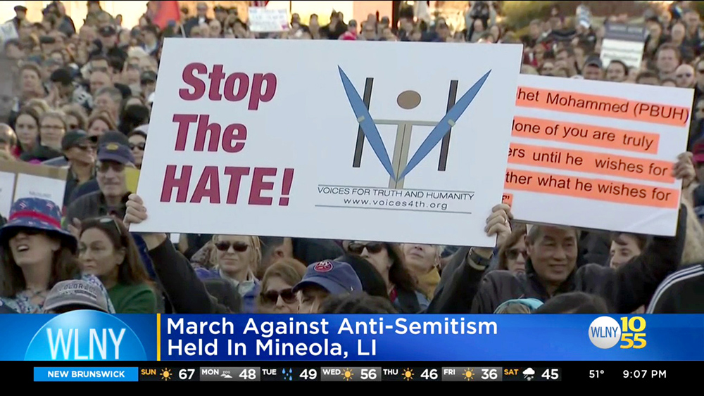 Nearly 3,000 people turned out in Mineola yesterday to raise their voices against anti-Semitism.
