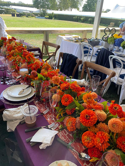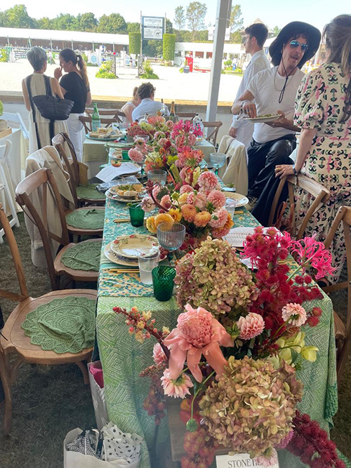 One of the signatures of Douglas Elliman is its prominent female power players some of whom I met including Chief Marketing Officer Stephanie Garbarini and prominent female attorney Jamie Heiberger Harrison both of whom possessed both brains and beauty in abundance. With four tables at the Classic, Elliman has become the premier sponsor of this annual happening and without their support things wouldn’t look so rosy. The decor at the tables of the Classic are renowned for both their expense and lavishness with prizes allotted to those with the prettiest tables and floral settings. VIP Guidelines are issued declaring centerpieces can be no higher than 18 inches, promotional materials may not be distributed on tables nor can additional chairs be added to the 14 ringside or 8 upper level, while rental supplies must be purchased from Party Rentals LTD. It even advises not to flap table clothes or make loud noises while horses are nearby to avoid spooking-Hamptonites take great pride in this event and it shows.