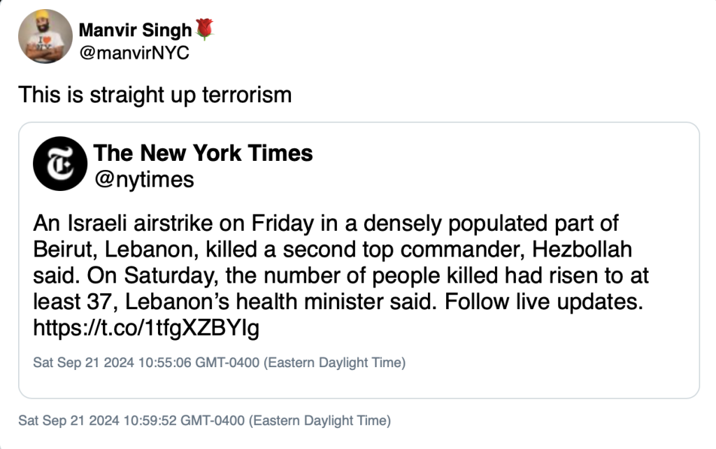 A Free Beacon review of his old X account found several other extremist posts, including one in which Singh accused Israel of committing “terrorism” with its operations against Hezbollah in Lebanon.