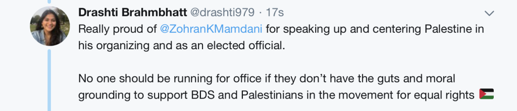On the same thread, she wrote that she supported Mamdani as a state assemblyman for “centering Palestine in his organizing and as an elected official.”