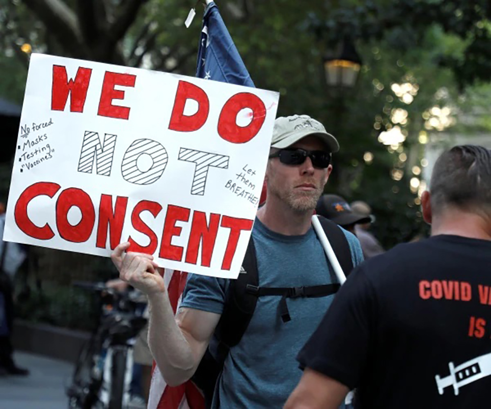“They are in fact in favor of voluntary vaccination with informed consent, but they oppose jack-booted coercion by the state to take a vaccine their religion forbids them to take. This is America, not Red China.”