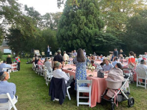 A half a mile away some spiritual nourishment was being satiated as Rabbi Leibel Baumgarten welcomed nearly 200 guests to his East Hampton synagogue at 13 Woods Lane for delicious vegetarian food, a short magic show and a remarkable program. Terri Levin Davgin thanked the Rabbi’s son Isaac, who has four children of his own, for recently donating a kidney to her. The Baumgarten family, who saved her life, were basking in the glory of their heroic deed in one of those moments that made me proud to be Jewish. Isaac said he was feeling great after the operation with zero side effects as he diligently tended to his young children’s needs while giving new meaning to the parable “every Jew is responsible for each other.”
