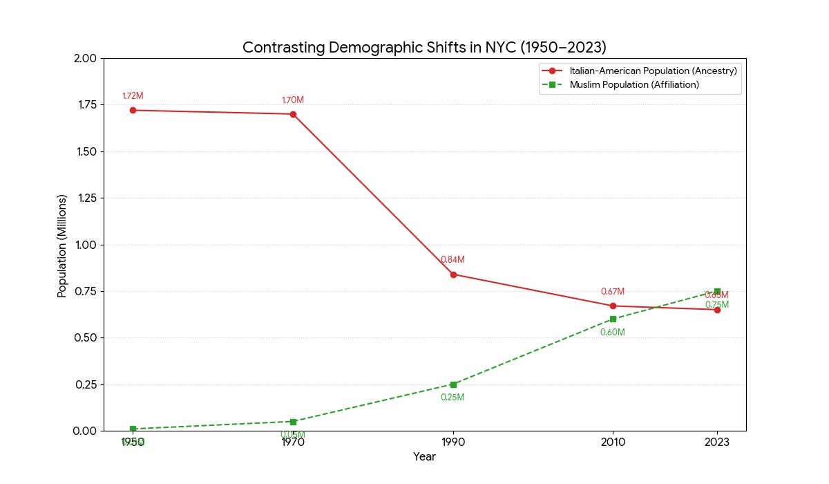 And by the time Zohran Mamdani beat Andrew Cuomo, there were more Muslims than Italian Americans in NYC.