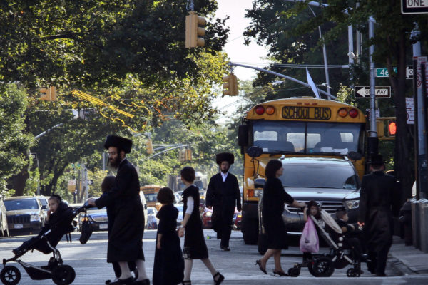 A Jewish family, including a mother and four children, were hit by a car on a New York street on Wednesday evening and pinned under a school bus, as the driver sped away from the scene.