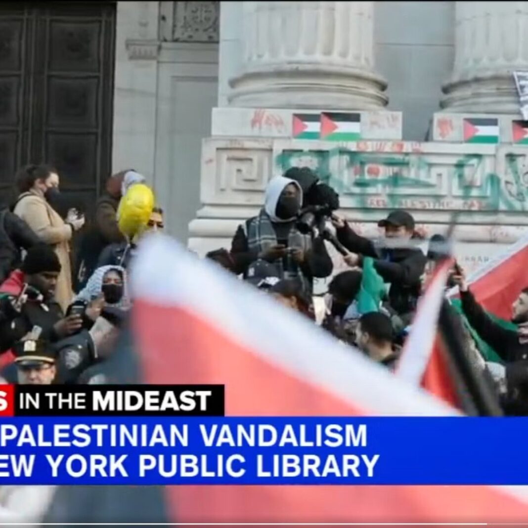 The New York City public library’s flagship building in Midtown Manhattan was severely defaced by pro-Palestinian rioters.
