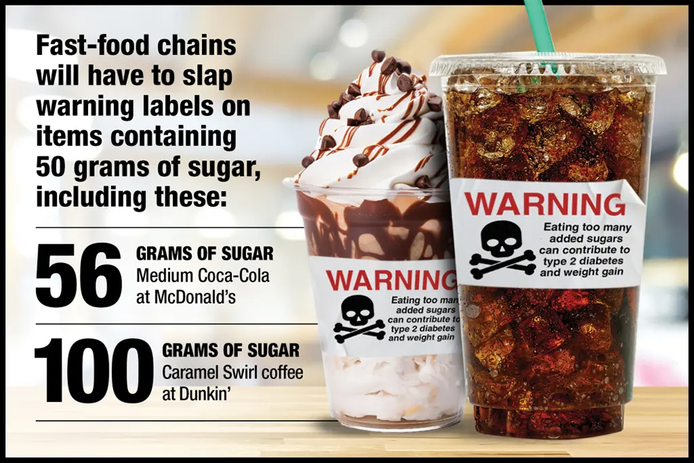 In a groundbreaking move by the Adams administration, fast-food chains and coffee shops across New York City are set to implement a new regulation. This regulation mandates the inclusion of warning labels on menu boards and packaging, aimed at raising awareness about high levels of added sugar in certain food and beverage items, the New York Post recently reported.