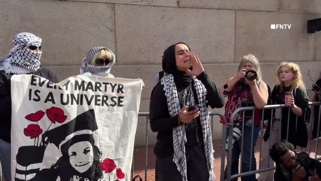 Within Our Lifetime described the protest as a denunciation of Israel and U.S. policies, accusing media outlets of “manufacturing consent for genocide” and urging participants to “honor the martyrs of Gaza and all of Palestine.” Critics say that paired with praise for terrorist operatives, these messages constitute public glorification of violence, heightening fears in the city’s Jewish community.