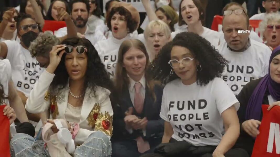Video footage that circulated on social appeared to show protesters trying to access a building that they said contains offices for Schumer and Sen. Kirsten Gillibrand (D-N.Y.). After being denied entry, some demonstrators appeared to remove outer layers of clothing to reveal shirts stated, “fund people, not bombs.”