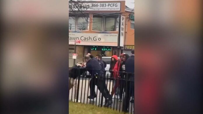 The incident happened Tuesday when officers responded to an after-school brawl involving a group of girls at a Staten Island bus stop, police said.