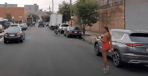 Disturbing video footage posted online further highlighted the brazen nature of the prostitution issue in East New York. The video, titled “East New York Ep. 2,” captured scenes at 7 a.m. on July 28 along Stanley Avenue near Sheffield Avenue. In the footage, a woman dressed in a revealing orange negligee and silver platform heels was seen walking provocatively in front of a parked car and a trash truck in an industrial area. Another woman, seemingly topless with an open jacket, crossed the street in front of oncoming traffic. The video also showcased other women in suggestive attire approaching potential clients.